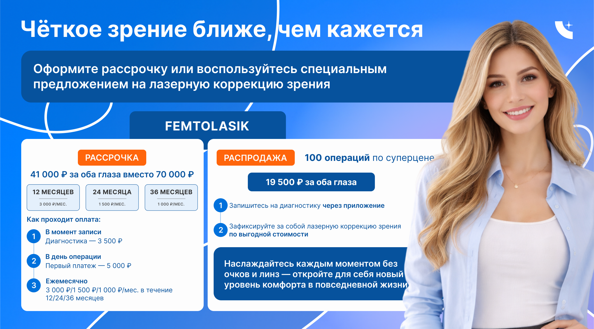 Благодаря акциям от горячей линии "Микрохирургия Глаза" у пациентов всегда есть возможность восстановить зрение по выгодной стоимости.